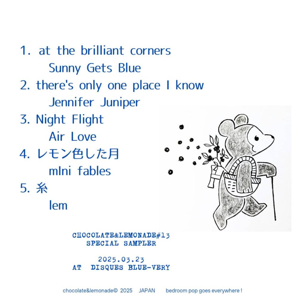 いつもお世話になっているチョコレモさんが恐れ多くもディスクブルーベリーにてイベントを開催して下さります!! ライブはLem、Sunny Gets Blue、Junji K (Jennifer Juniper)と豪華。